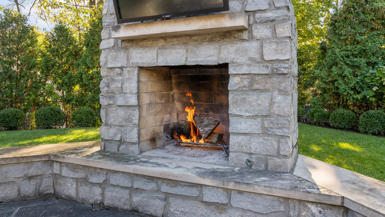 Details, details, details. Landare Ltd. matched the focus of the homeowners' ideas to extend their living areas with detailed knowledge. TVs for Ohio game days seamlessly sit around the living areas with cords hidden in junction boxes within the masonry. Exact stone colors were found to match the existing, so no transition could be seen between old and new.