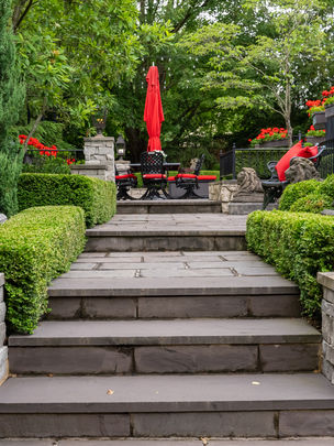 The photos don't need much additional detail because it was just breathtaking from every angle. The precision in the boxwoods and 20 foot-tall hornbeams set the property off with unique angles and coverage. The copper fountain and stone fountain created a relaxing environment with the sounds of water.